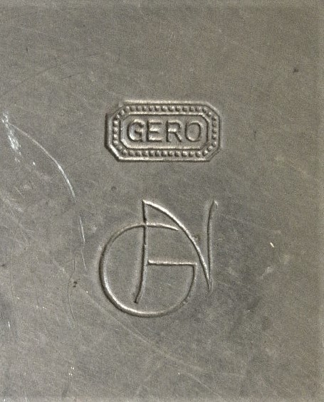 Merkteken strakke theepot, tin antiek, Meeuws Zoon, Den Haag, Nederland